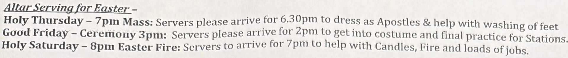 | Confessions | Every Sunday at 9.30am before 10am Mass |