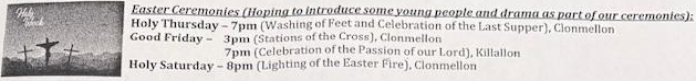 10:00am Rosary Monday-Friday Clonmellon 9:35am-9:55am |