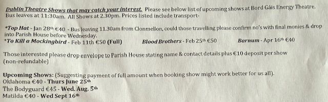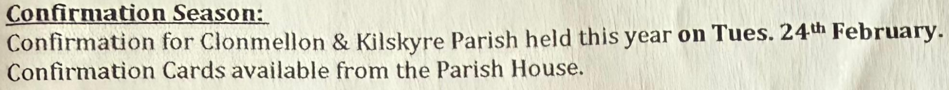 Tuesday -Archerstown-Rathbrack, Herbertstown Wednesday-Delvin Roard Cloran, Killua.